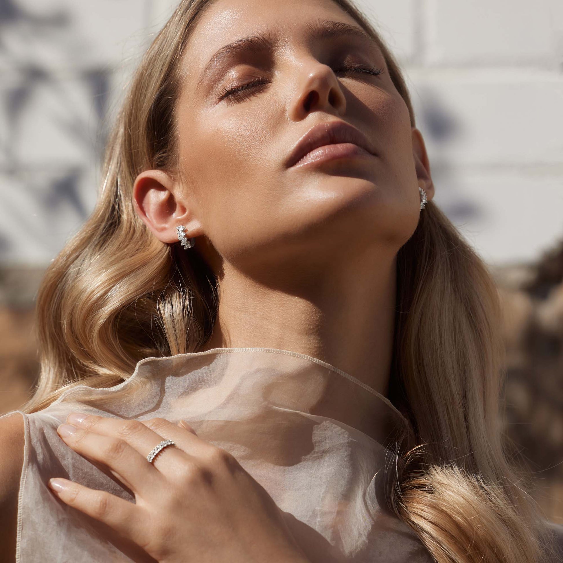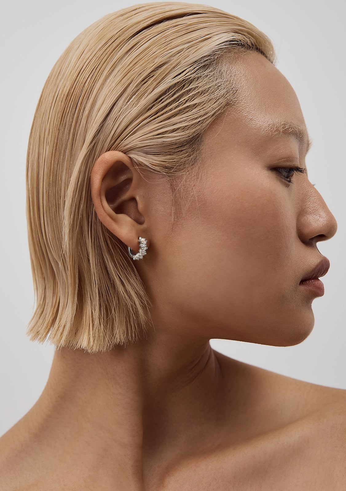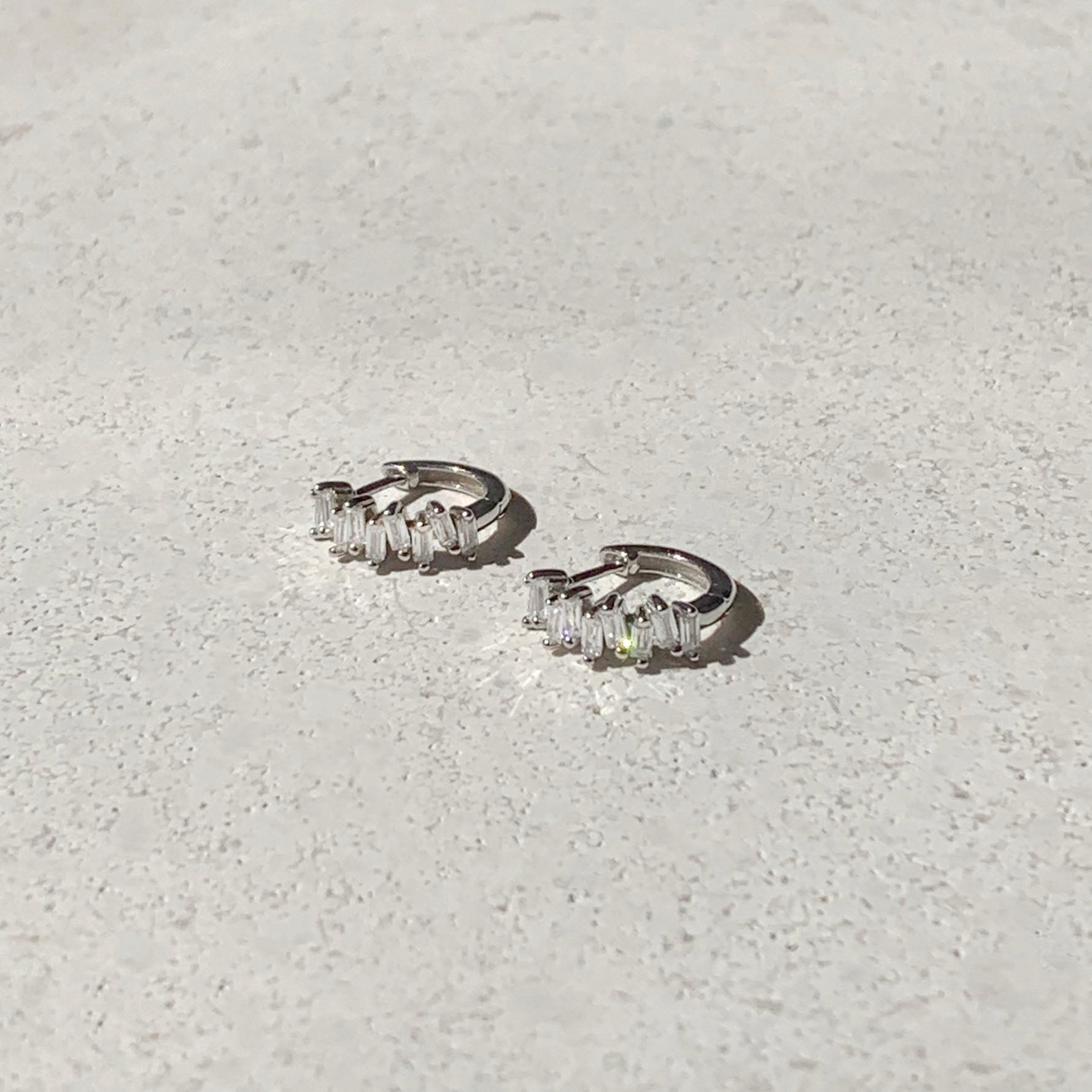 The highly coveted and always in style Biarritz Mini Hoops feature staggered baguette quartz stones. Their petite size creates a subtle element of sparkle sure to elevate any look with classic elegance.