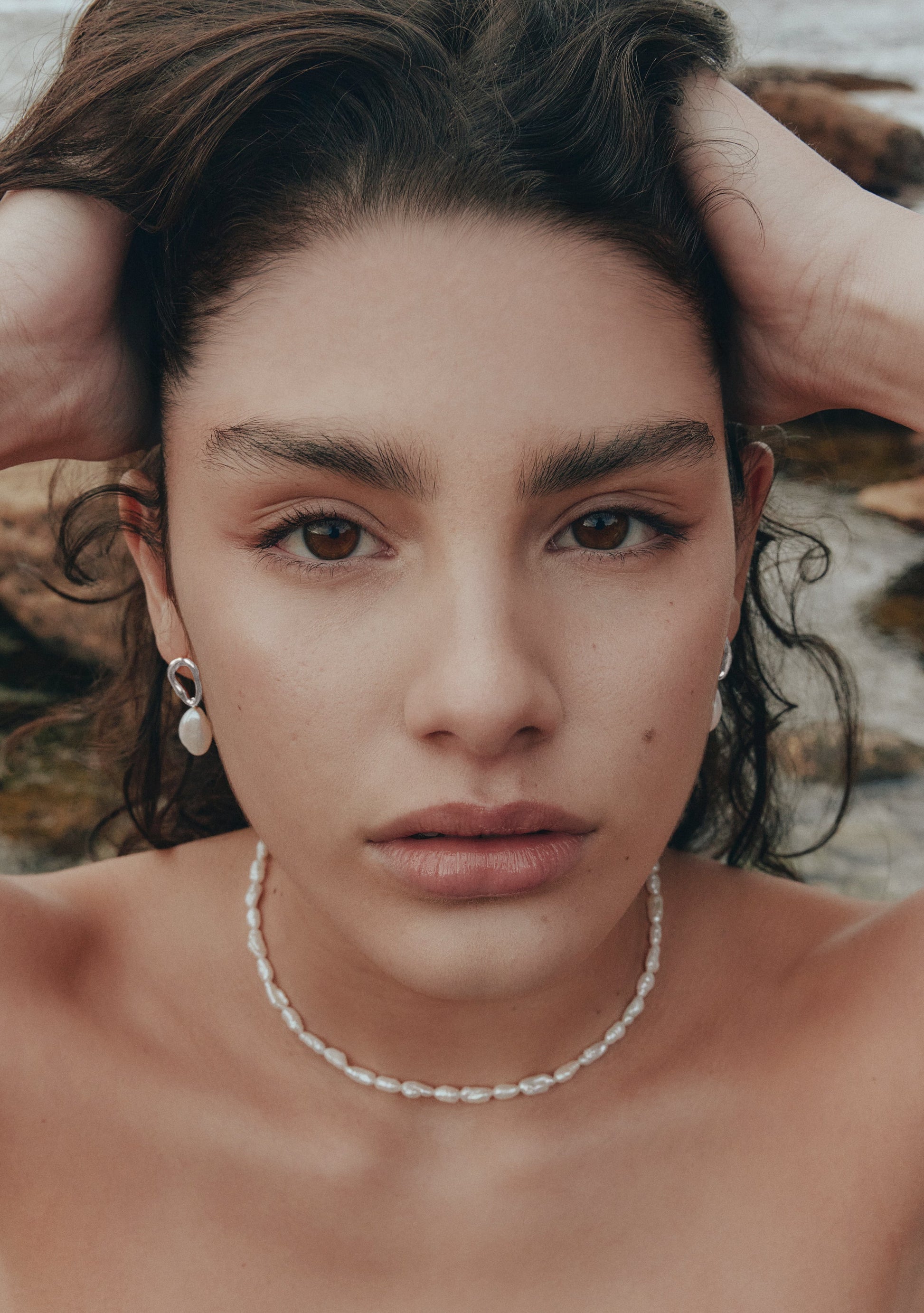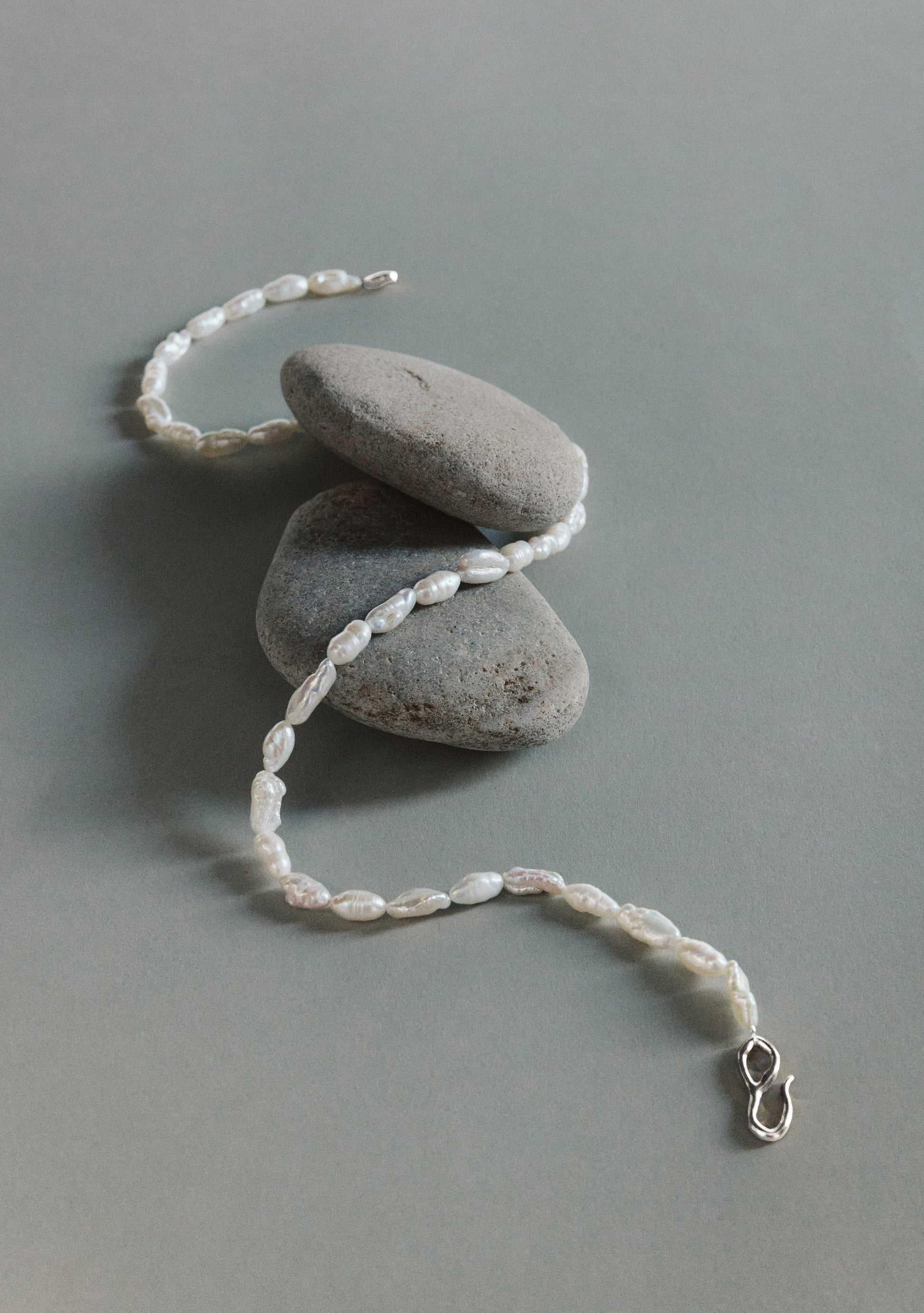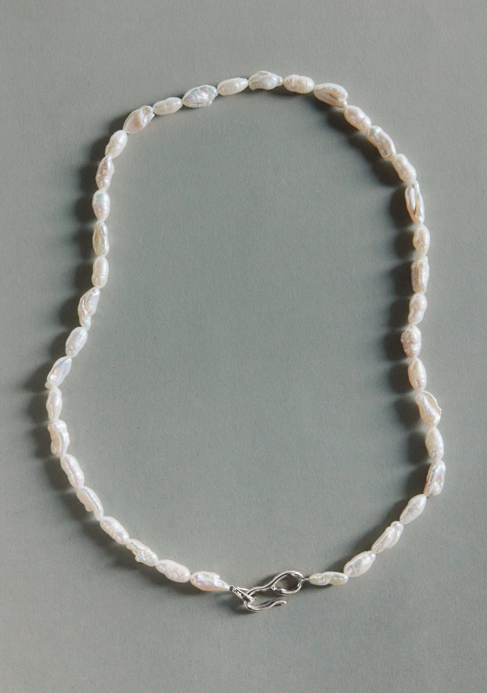 Designed and handcrafted in our Sydney studio, the Cielo Necklace features lustrous freshwater Keshi pearls and a sculptural clasp cast in Sterling Silver. The natural beauty and irregularity of the pearls ensure that no two pieces are exactly alike, making each necklace a truly unique expression of elegant, modern refinement.