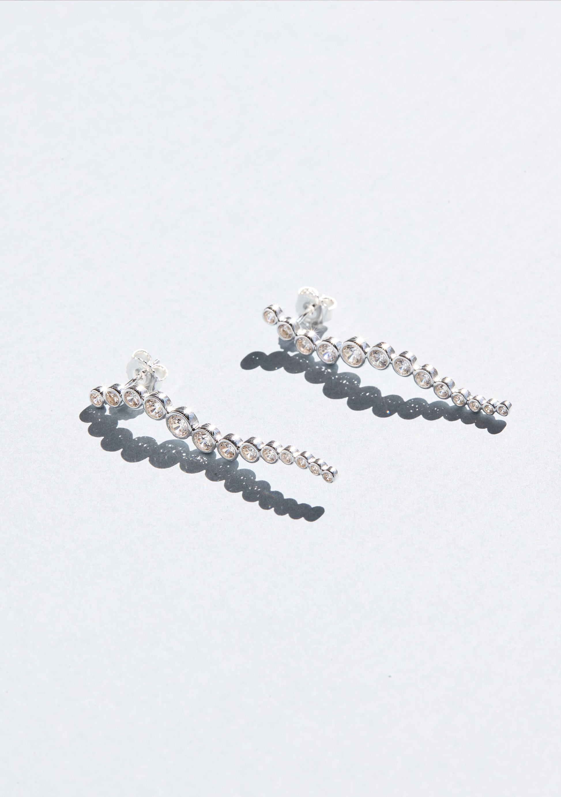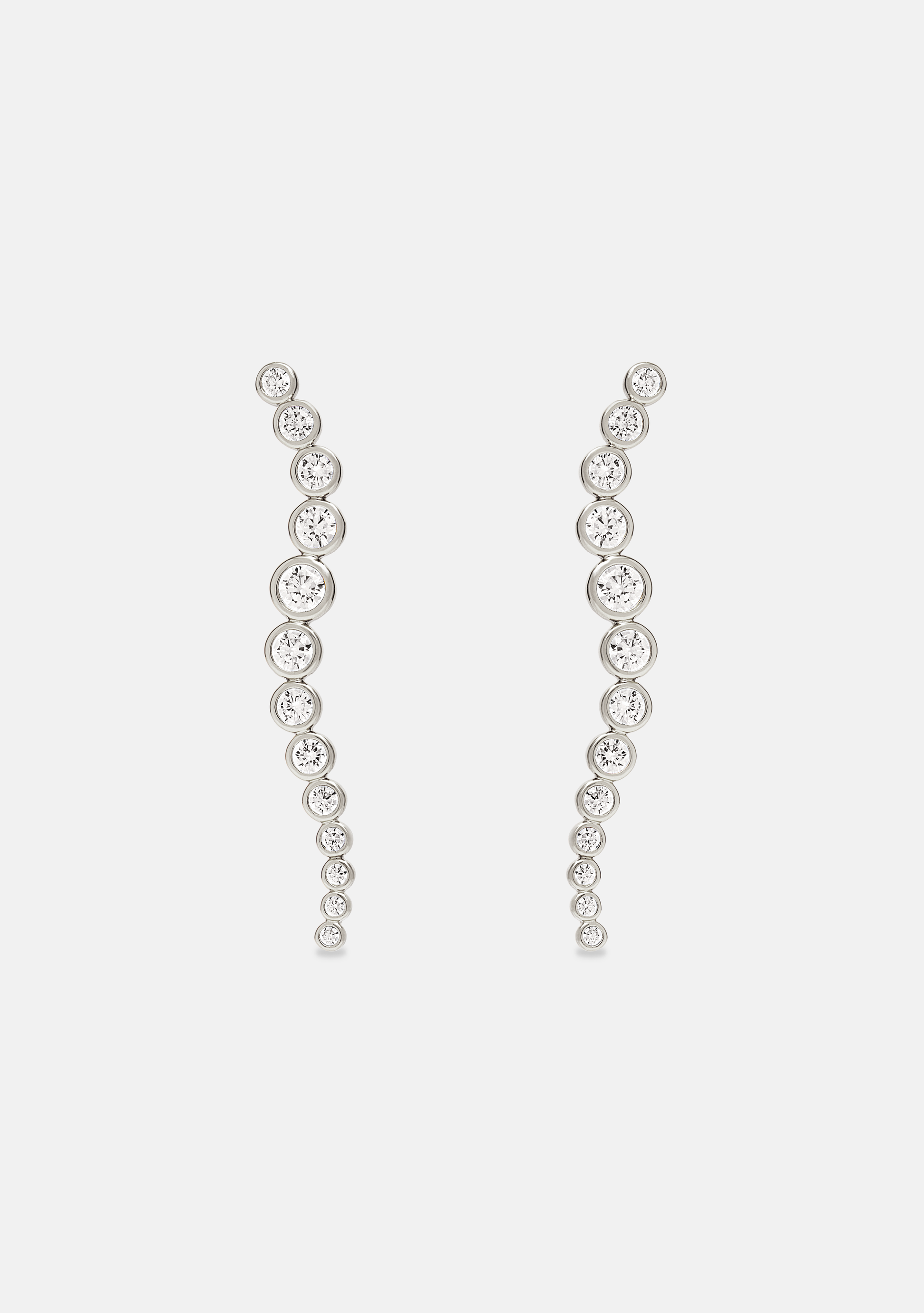 Sophisticated and timeless, the Crescendo Drop Earrings will elevate your next occasion look with modern sparkle and a unique silhouette. Featuring a cascading wave of hand set sparkling Zirconia stones increasing in size with perfect symmetry, these earrings are sure to be loved for years to come as a future heirloom.