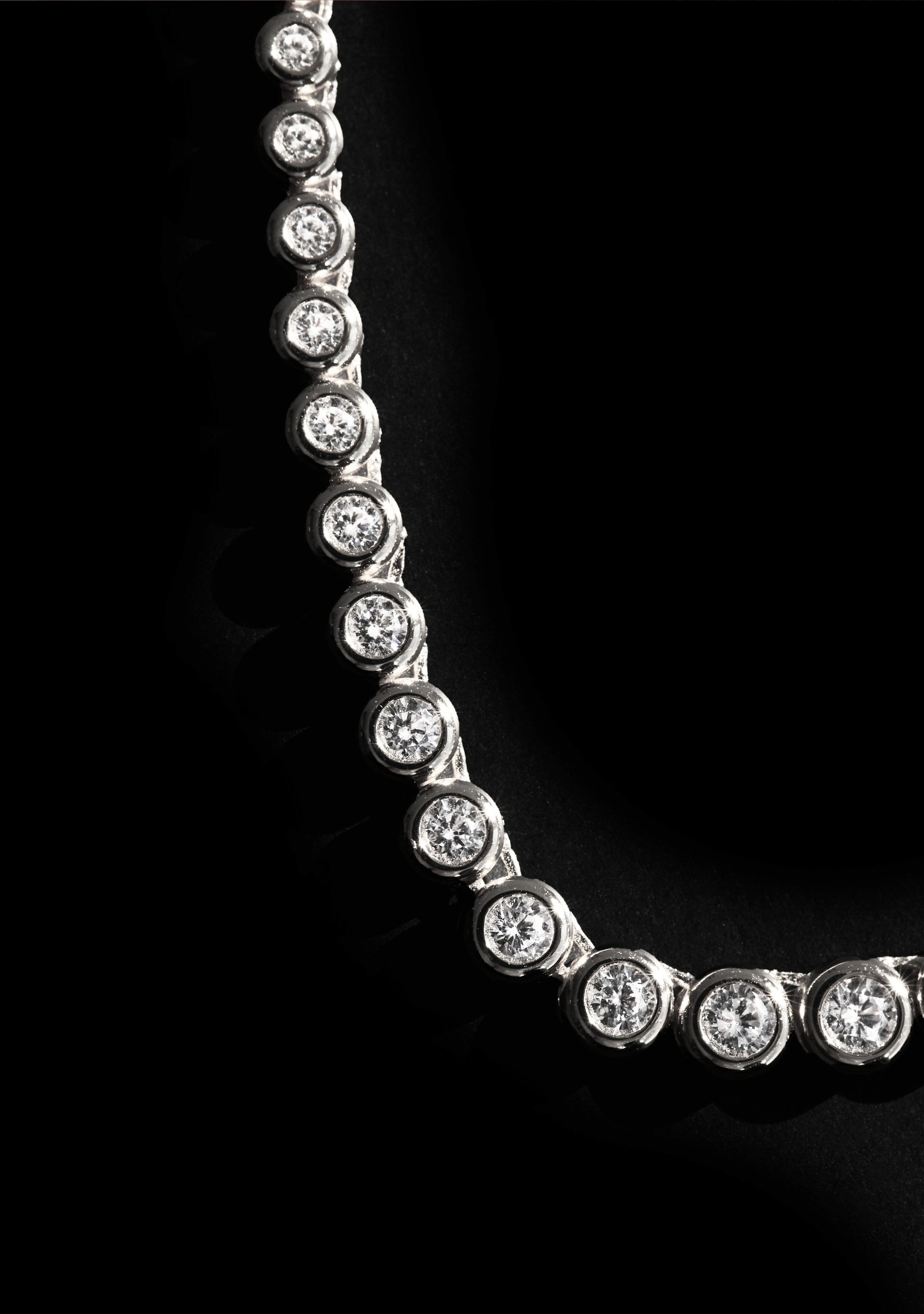 Make an impact with the artful elegance of the Crescendo Necklace. A modern and sophisticated update on the classic tennis design, featuring a rhythmic pattern of hand set sparkling Zirconia ascending in size with perfect symmetry. Carefully crafted with a top-edge link mechanism that evenly distributes the stone weight, ensuring the piece sits flat on the neck and prevents flipping. This timeless piece is an ideal gift for yourself or someone special, a future heirloom sure to be loved for years to come.