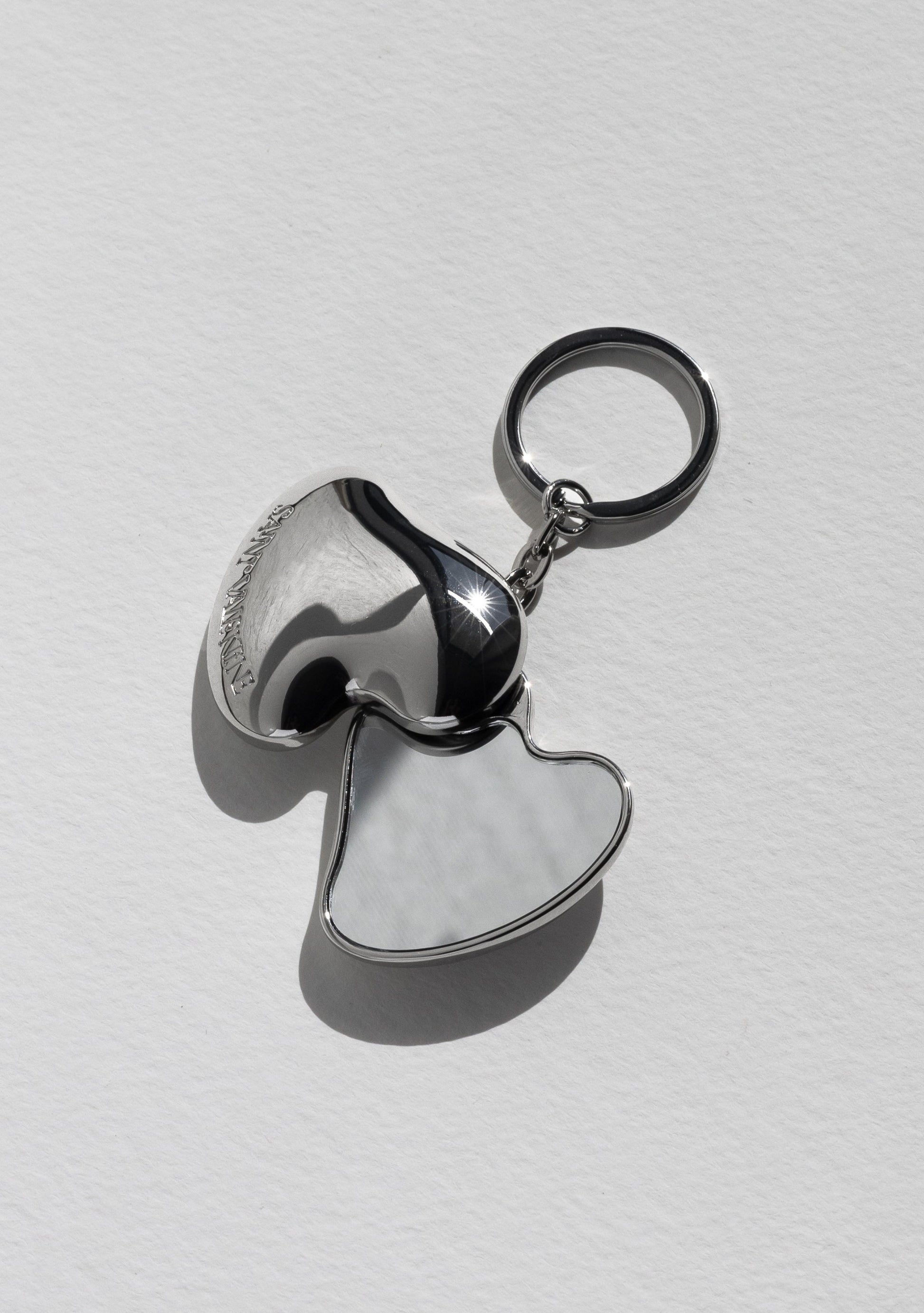 Bring style and function to your everyday essentials with this sculptural heart-shaped accessory that reveals two internal mirrors in it's open swivel design.