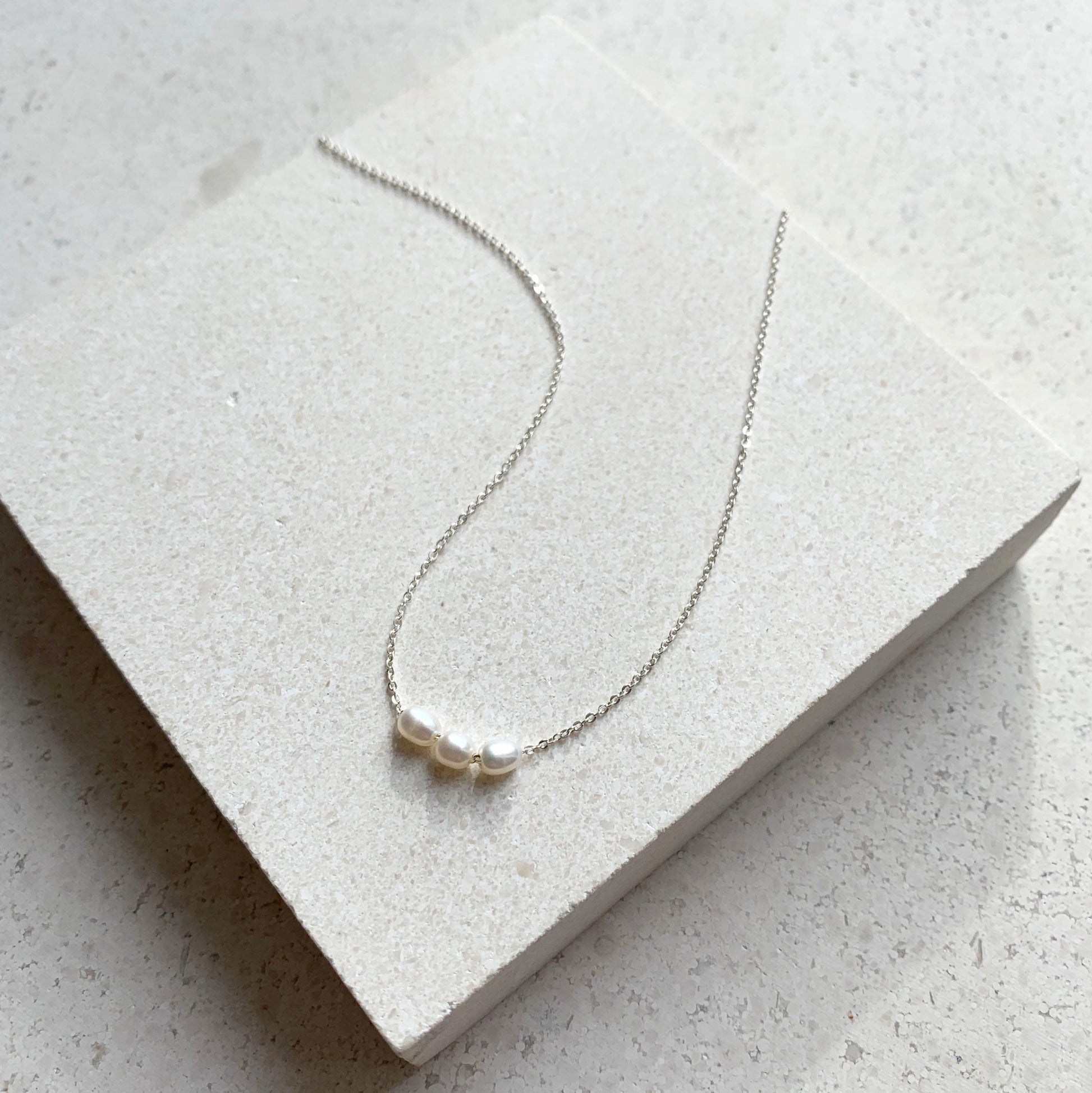 Our signature Mini Pearl Necklace will quickly become your go-to everyday style. A modern and elegant update on the classic pearl necklace, featuring three dainty freshwater pearls threaded onto a fine gold chain. Equally beautiful worn alone or layered, this style is the perfect gift for yourself of someone special.
