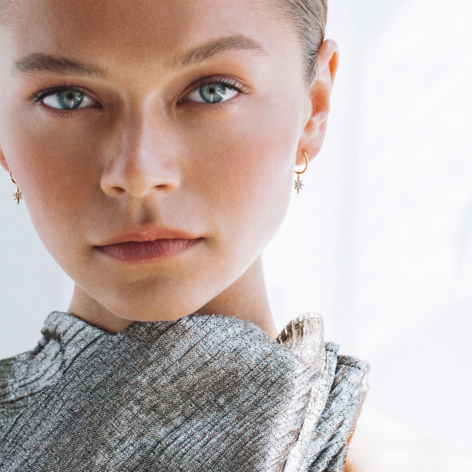 The North Star Mini Hoop will leave you starry-eyed with its glistening star pendant daintily suspended from our signature textured sleeper. Wear stacked with similar styles for a sparkly yet subtle ear stack.