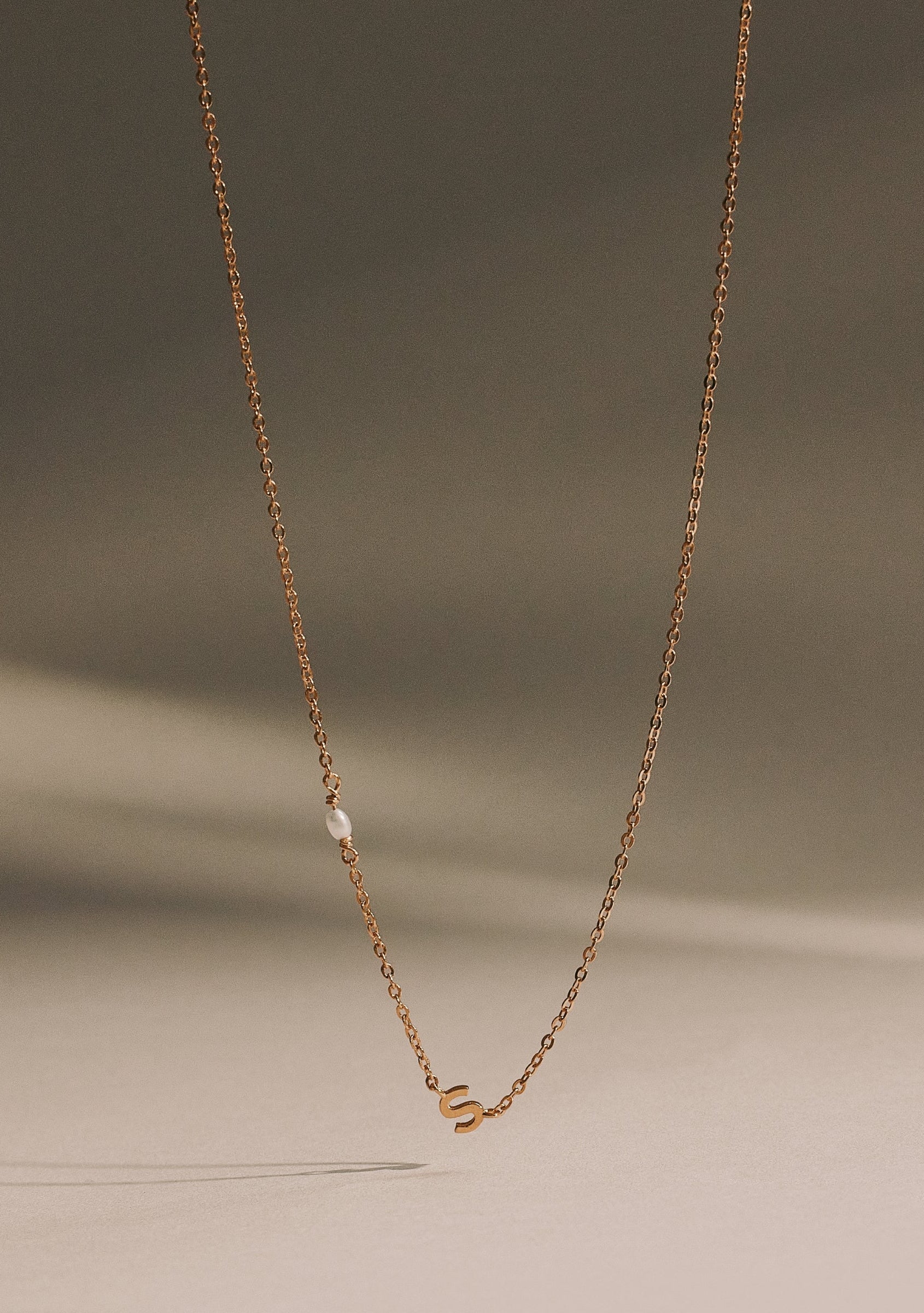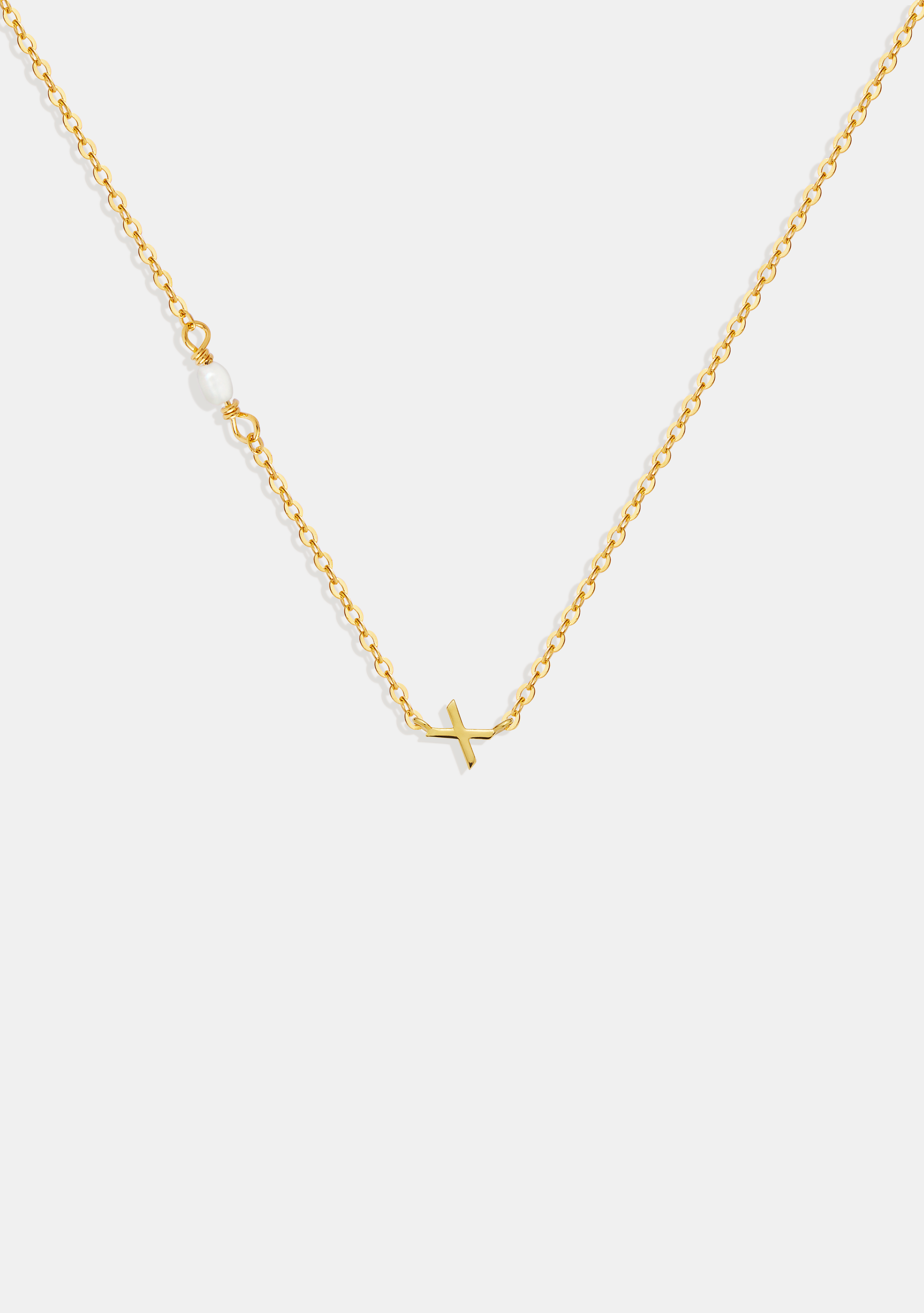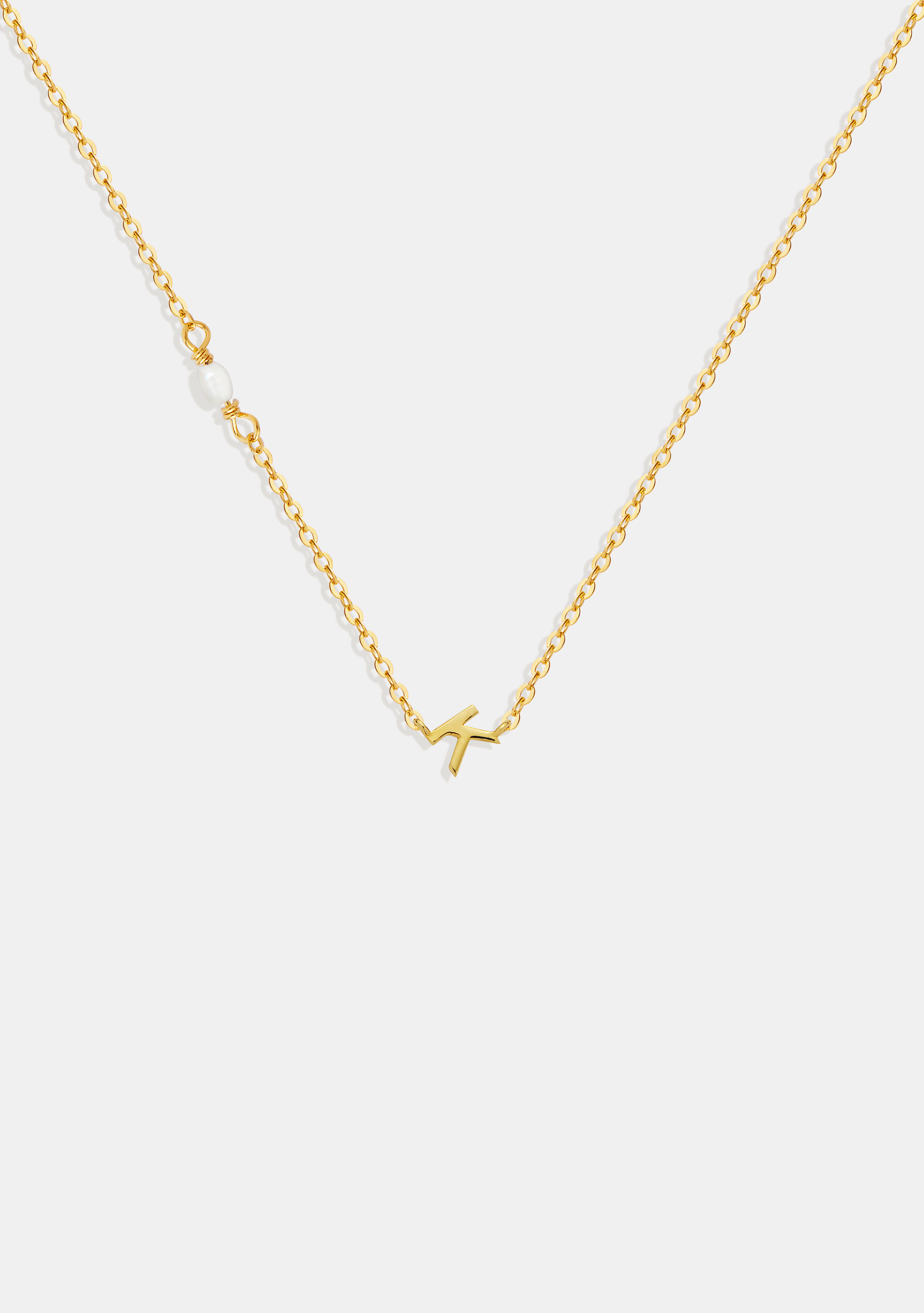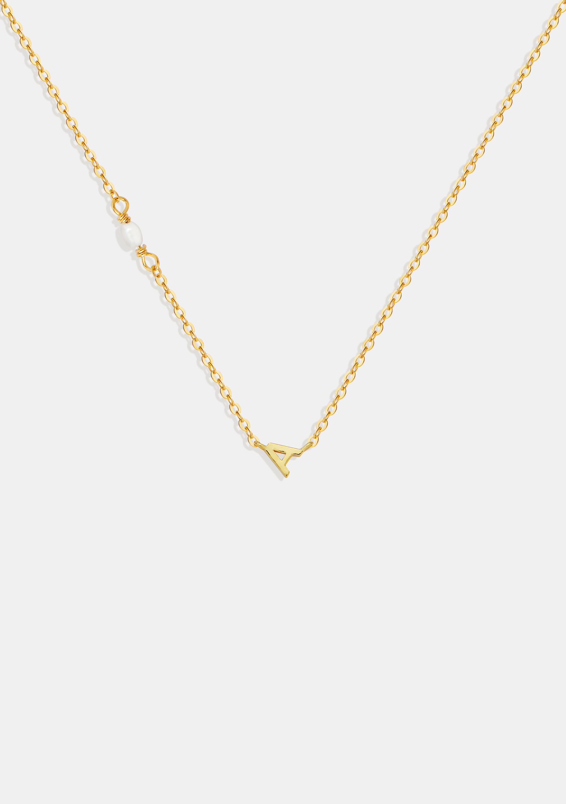 Featuring a fine chain adorned with your choice of letter and petite freshwater pearls.
