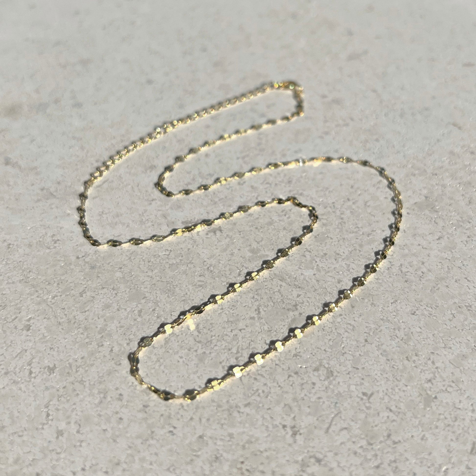 The Riviera Fine Necklace combines classic fine chain proportions with the perfect amount of sparkle. This modern style beautifully reflects light with petal chain links, twinkling against your décolletage for day to night impact.
