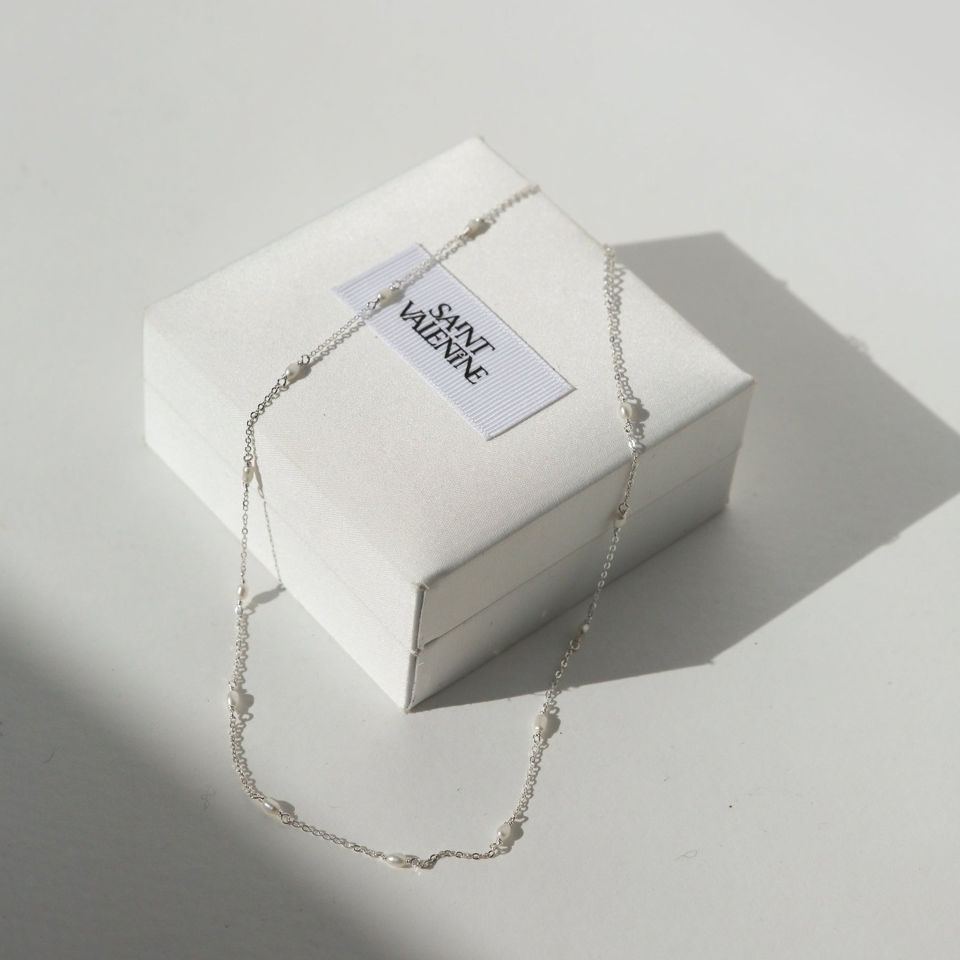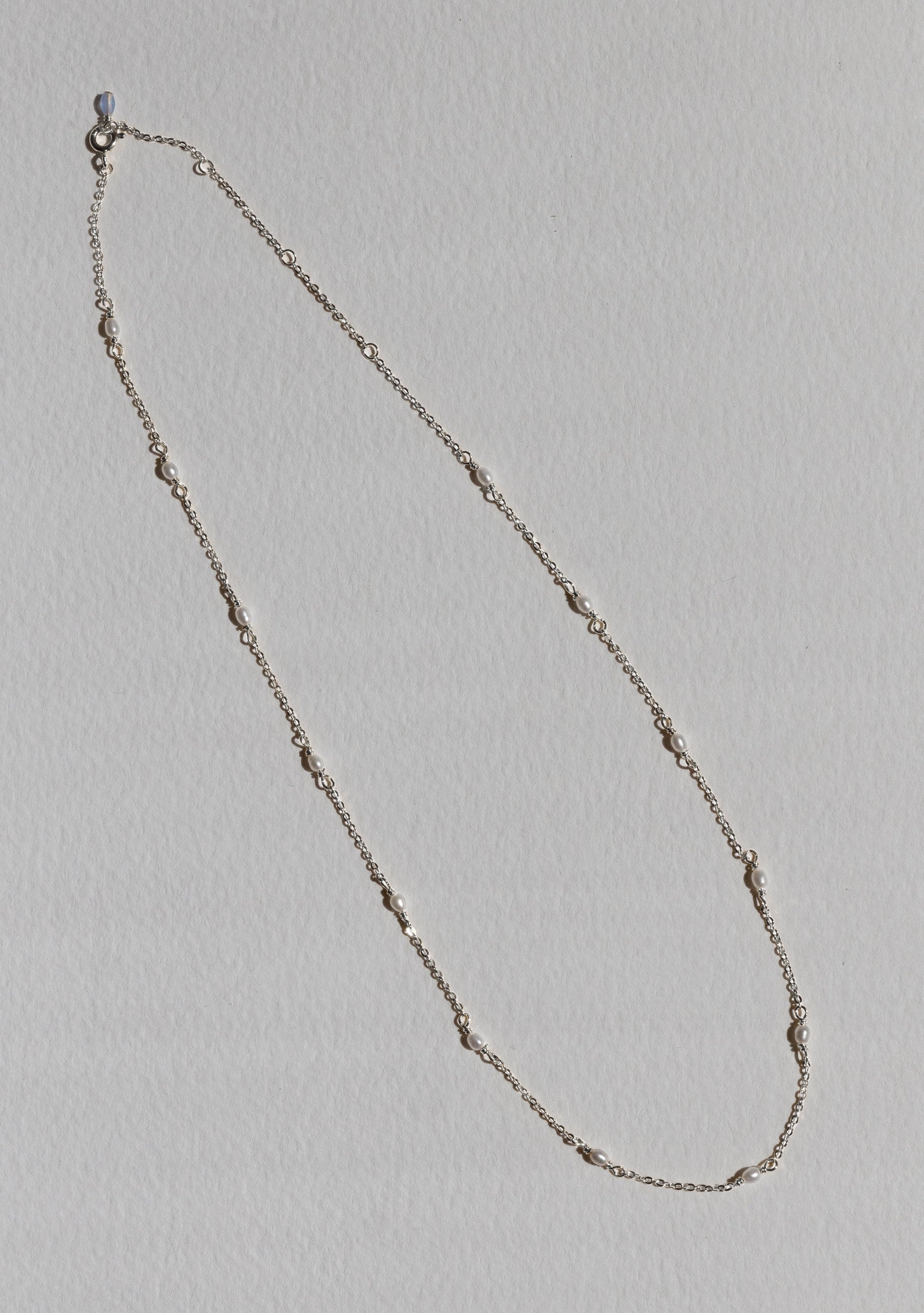 Featuring the natural beauty of petite freshwater pearls suspended on a fine chain, with the subtle addition of a single blue stone imbued with sentimentality and good luck. Dainty proportions and timeless materials take this piece from special occasion to everyday adornment. The Something Blue Necklace is the perfect gift for yourself or the bride-to-be.