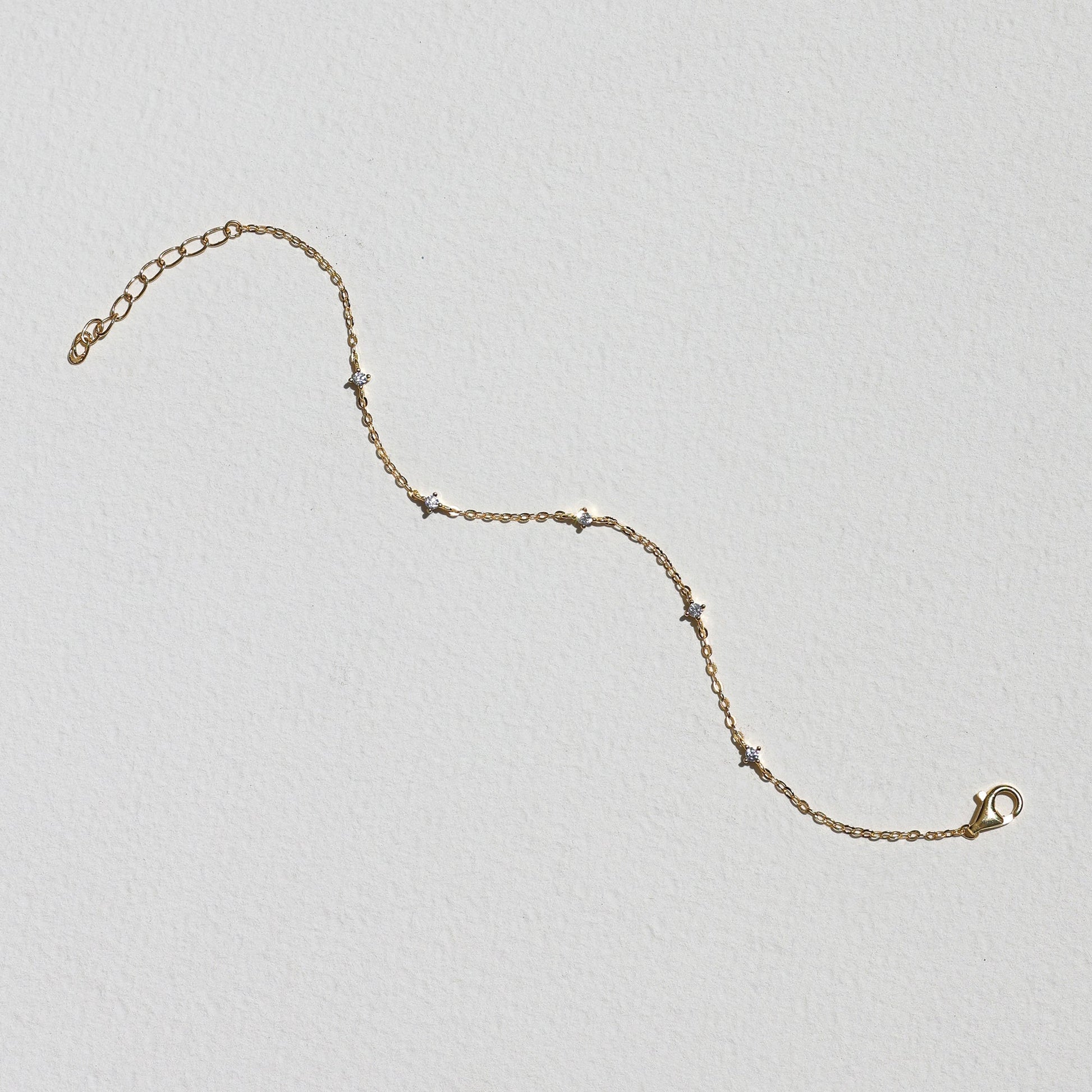 With the subtle sparkle of five petite stones suspended on a fine chain, the Starlight Bracelet captures the enchanting twinkle of first stars in the evening sky. Pair with the Starlight Ring and Necklace for a curated look, or wear alone for dainty adornment. A timeless gift for someone special or to treat yourself.