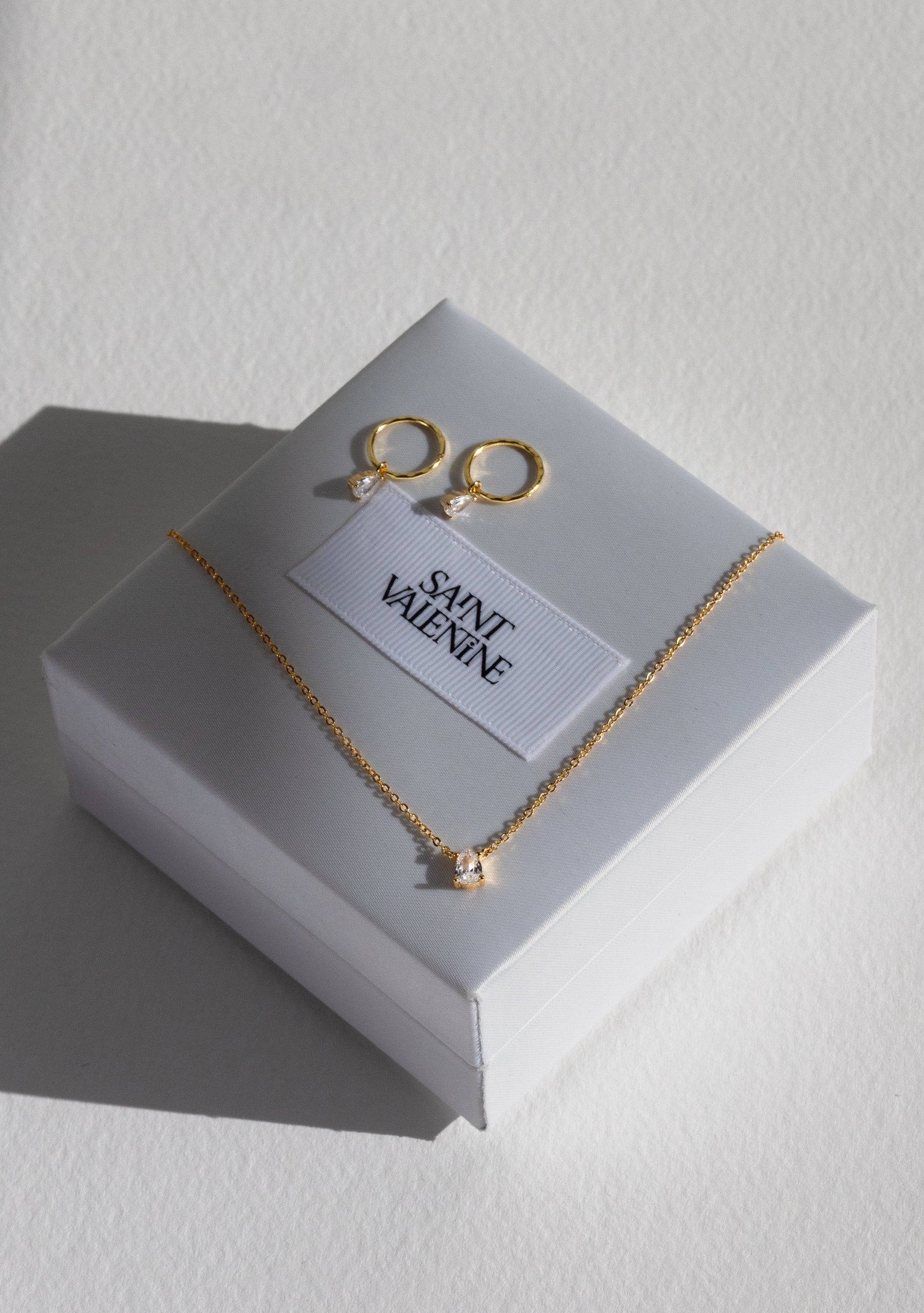 Combining our best selling Valentine Necklace and Valentine Mini Hoops, this duo creates the perfect amount of dainty sparkle. This signature set exudes femininity and everyday elegance, making it the ultimate gift for yourself or someone special.