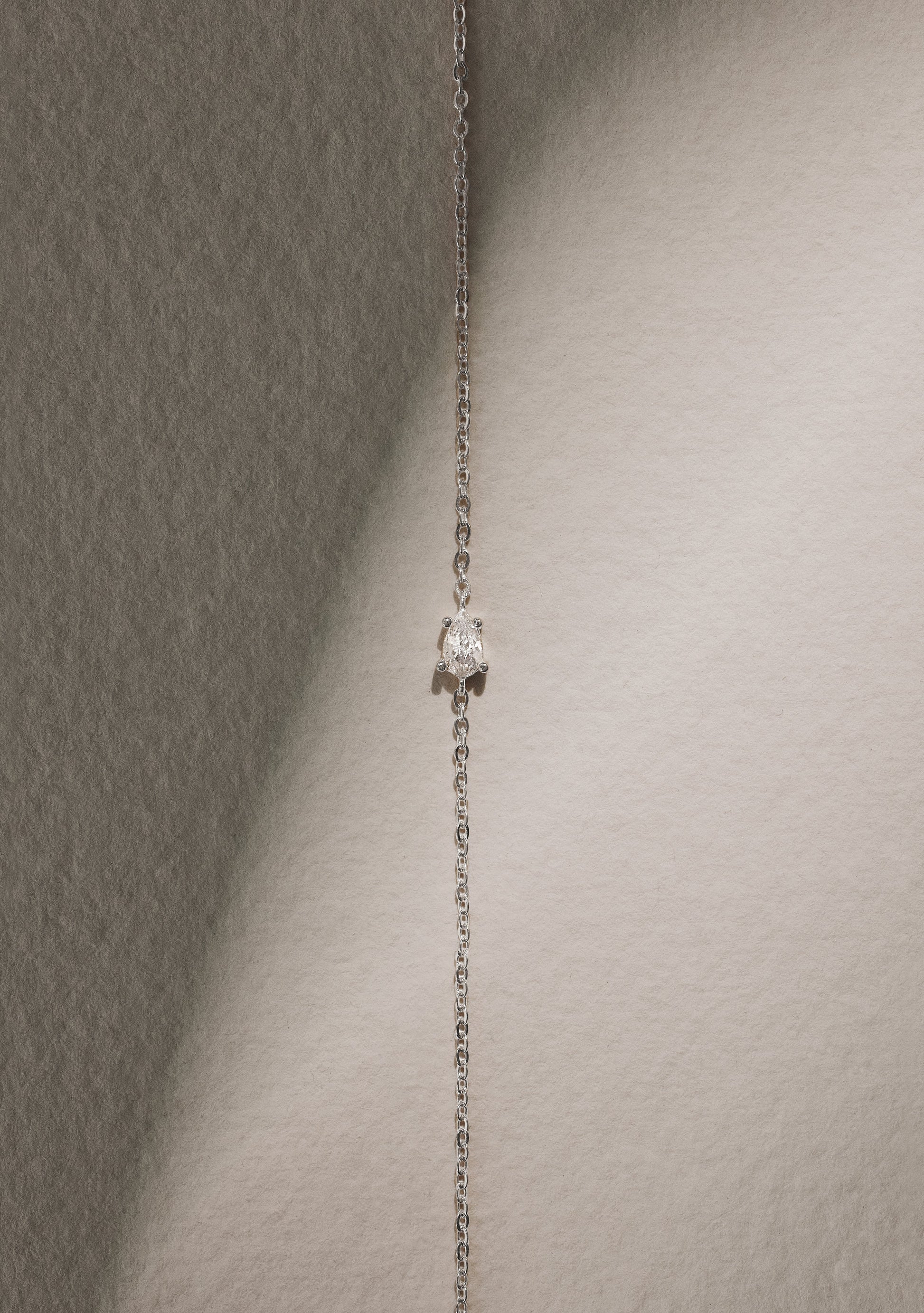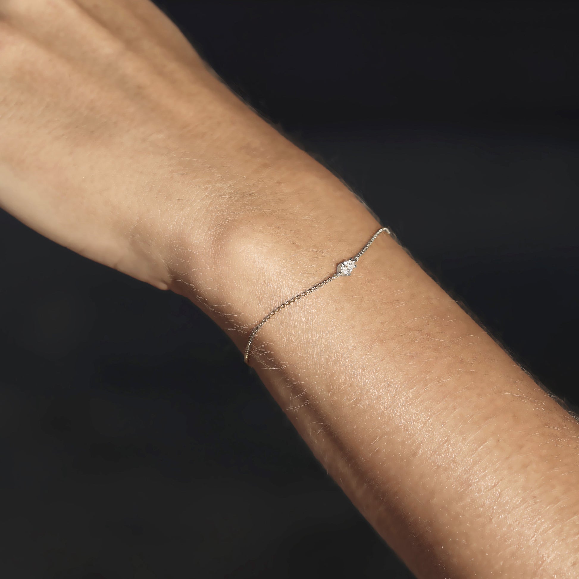 A signature Saint Valentine style that is both timeless and elegant. This bracelet features a radiant pear shaped stone in a classic claw setting suspended from a fine chain. Sure to be your go-to for special occasions and every day adornment or a cherished gift.